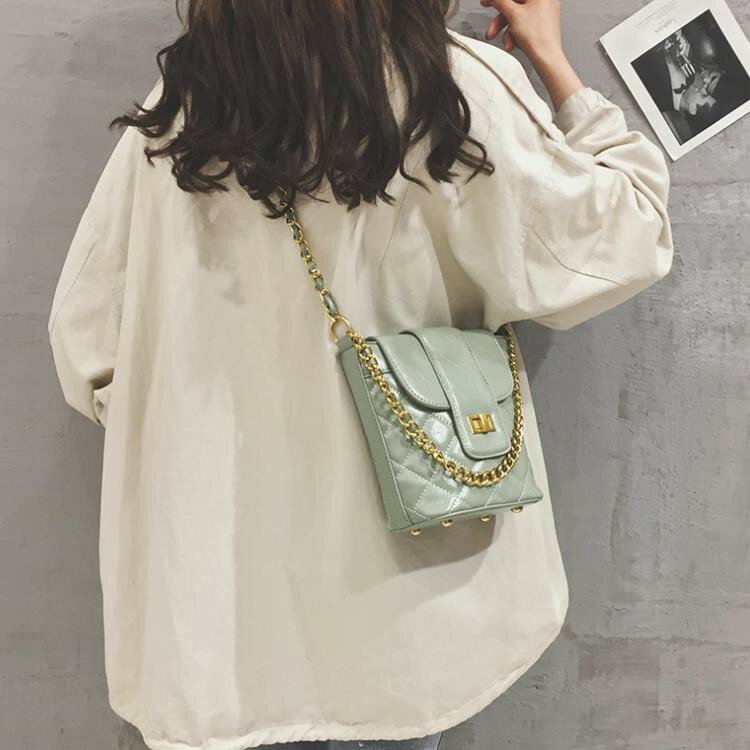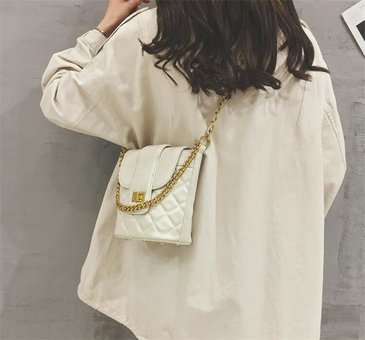使い心地抜群 韓国ファッション型ひし形刺繍糸バケツバッグチェーンショルダーバッグ上品映え(T)