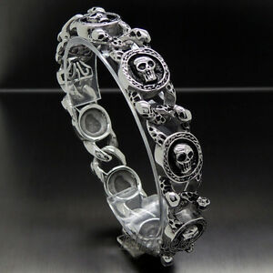 【送料無料】ジュエリー・アクセサリー メンズショーツシルバースカルステンレススチールバイカーチェーンブレスレットnuovi pantaloncini uomo teschi argento 316l acciaio inox biker bracciale a catena 852